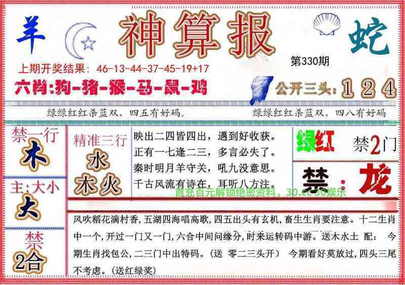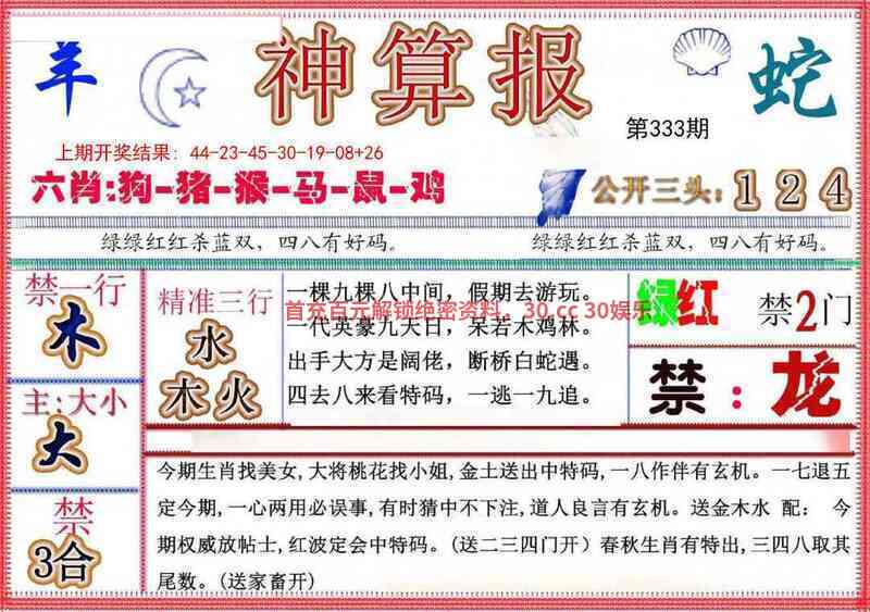 | 333期:七肖【鼠猪狗蛇牛鸡龙】开:鼠06准 |