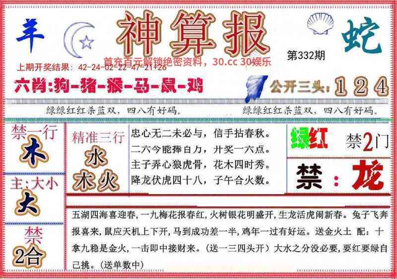 | 332期:前后中特【前肖】开:龙26准 |